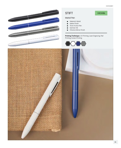 STIFT Printing Technique : UV Printing, Laser Engraving, Pad Printing, Screen Printing%u2022 Material: MetalMatte FinishTwist Action PenGerman Ink%u2022 Chrome Mirror FinishMetal PenHK0486STATIONERY91