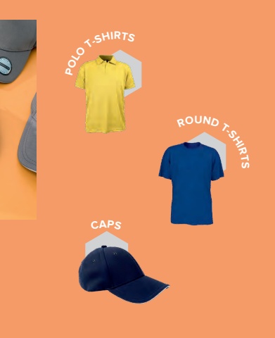 APPARELPossibly one of the most noticeable means of promotion, apparel products like caps and t-shirts work very well for brands. Not only do they remain in trend but there is a high chance of visibility provided to your brand each time a piece of apparel with your logo is worn in public. Comfortable, versatile, and customizable it ensures your brand is represented with every wear.SHIRTS- T OL OPROUND T-SHIRTSCAPS