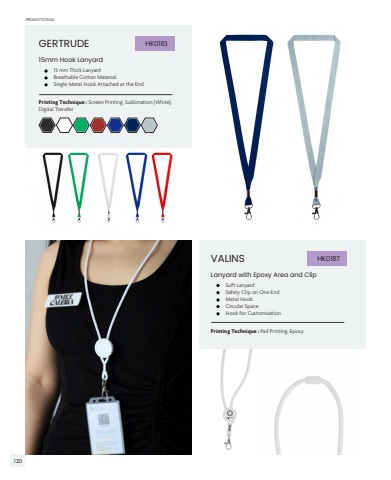 GERTRUDEVALINS%u2022 15 mm Thick Lanyard Breathable Cotton Material Single Metal Hook Attached at the End%u2022 Soft Lanyard Safety Clip on One End Metal Hook Circular Space Hook for Customisation15mm Hook LanyardLanyard with Epoxy Area and ClipPrinting Technique : Screen Printing, Sublimation (White), Digital TransferPrinting Technique : Pad Printing, EpoxyHK0183HK0187PROMOTIONAL120