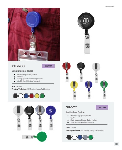 KIERROSGROOT%u2022 Material: High-quality PlasticSmall DiaMulti-purpose Circular Badge HolderSuitable for all Kinds of Lanyards%u2022 Material: High-quality PlasticBig Dia Multi-purpose Circular Badge HolderSuitable for all Kinds of LanyardsSmall Dia Reel Badge Big Dia Reel BadgePrinting Technique : UV Printing, Epoxy, Pad PrintingPrinting Technique : UV Printing, Epoxy, Pad PrintingSize : 1.90 cmSize : 2.60 cmHK0188HK0189PROMOTIONAL121