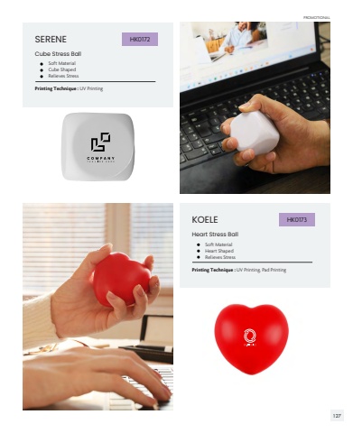 SERENEKOELE%u2022 Soft MaterialCube ShapedRelieves Stress%u2022 Soft MaterialHeart ShapedRelieves StressCube Stress Ball Heart Stress Ball HK0172HK0173Printing Technique : UV PrintingPrinting Technique : UV Printing, Pad PrintingPROMOTIONAL127