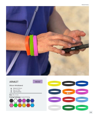 ARMLET%u2022 Material: SiliconEasy to WearHigh FlexibilitySilicon WristbandHK0167Printing Technique : Screen PrintingSize : 10 x 1.2 cmPROMOTIONAL135