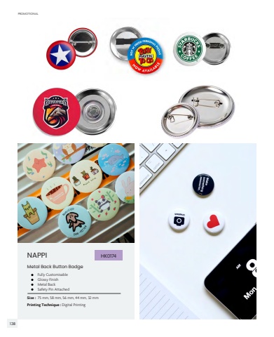 NAPPI%u2022 Fully Customisable Glossy Finish Metal Back Safety Pin AttachedMetal Back Button BadgeHK0174Printing Technique : Digital PrintingSize : 75 mm, 58 mm, 56 mm, 44 mm, 32 mmPROMOTIONAL138