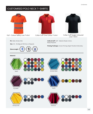Full - Colour Safety Line T-shirt Collar Cuff One Colour T-shirt Collar Cuff Single Coloured Line T-shirtSize : XS - 2XL (Big and Tall Size on Request)Printing Technique : Screen Printing, Digital Transfer, EmbroideryCollar & Cuff : Self - Material, Ready Cotton, Ready PolyesterFit : Male, Female, KidsSleeve Lenght : PQ MeshHoneycomb InterlockDryfitMesh Knitted MeshMaterial : CUSTOMISED POLO NECK T-SHIRTSON DEMAND145