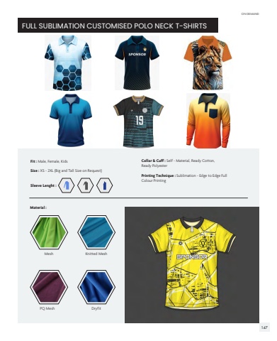 Size : XS - 2XL (Big and Tall Size on Request)PQ Mesh DryfitMesh Knitted MeshPrinting Technique : Sublimation - Edge to Edge Full Colour PrintingCollar & Cuff : Self - Material, Ready Cotton, Ready PolyesterFit : Male, Female, KidsSleeve Lenght : Material : FULL SUBLIMATION CUSTOMISED POLO NECK T-SHIRTSON DEMAND147