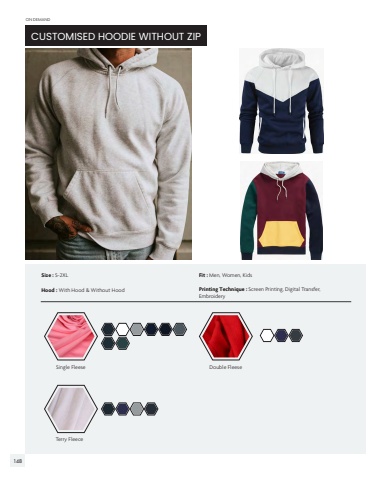 Size : S-2XLHood : With Hood & Without Hood Terry FleeceSingle Fleese Double FleeseCUSTOMISED HOODIE WITHOUT ZIPFit : Men, Women, KidsPrinting Technique : Screen Printing, Digital Transfer, EmbroideryON DEMAND148
