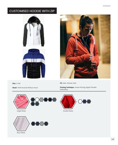 Size : S-2XLHood : With Hood & Without Hood Terry FleeceSingle Fleese Double FleeseCUSTOMISED HOODIE WITH ZIPFit : Men, Women, KidsPrinting Technique : Screen Printing, Digital Transfer, EmbroideryON DEMAND149