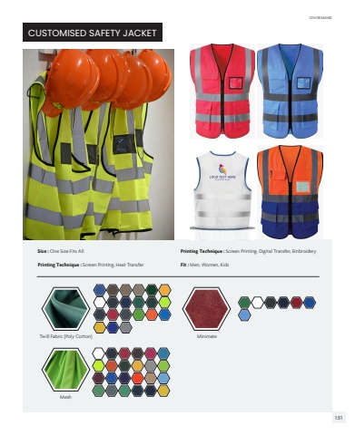 Size : One Size Fits AllPrinting Technique : Screen Printing, Heat TransferTwill Fabric (Poly Cotton)Mesh Minimate CUSTOMISED SAFETY JACKETPrinting Technique : Screen Printing, Digital Transfer, EmbroideryFit : Men, Women, KidsON DEMAND151