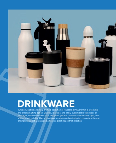 DRINKWARETumblers, bottles and mug, a whole collection of reusable drinkware that is a versatile and practical gifting option. Durable, reusable, and easily customizable with logos or messages, drinkware makes for a thoughtful gift that combines functionality, style, and lasting brand visibility. Also, a great way to reduce carbon footprint is to reduce the use of single-use plastic, reusable bottles is a great step in that direction.LES TT OBLEETSGS UMLUMINIUMABOTTLESTUMBLERS