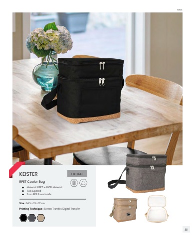 KEISTERSize : 24.5 x 23 x 17 cm%u2022 Material: RPET + 600D MaterialTwo Layered2mm EPE Foam InsideRPET Cooler BagHK0441Printing Technique : Screen Transfer, Digital TransferBAGS55