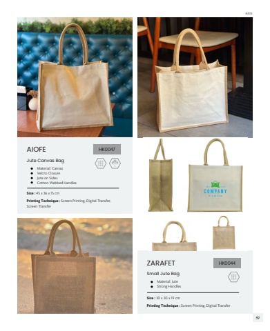 AIOFEZARAFETSize : 45 x 36 x 15 cmSize : 30 x 30 x 19 cm%u2022 Material: CanvasVelcro ClosureJute on SidesCotton Webbed Handles%u2022 Material: JuteStrong HandlesJute Canvas BagSmall Jute BagHK0047HK0044Printing Technique : Screen Printing, Digital Transfer, Screen TransferPrinting Technique : Screen Printing, Digital TransferBAGS59