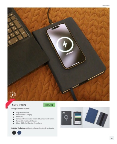 ARDUOUSPrinting Technique: UV Printing, Screen Printing, D-embossing %u2022 Magsafe Notebook10W Wireless Charging80 SheetsComes with Removable Mobile & Business Card HolderRemovable Notebook Closure60 cm Cable for Charging Power BankMagsafe NotebookHK0494STATIONERY69