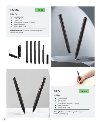 BIRO Printing Technique : Pad Printing, UV Printing, Screen Printing, Laser Engraving%u2022 Material: MetalGerman MadeBlue ColourSilver Chrome Top Barrel & DetailingBlack Under Barrel%u2022 Chrome Mirror FinishBall PenHK0459YAZMAPrinting Technique : UV Printing, Screen Printing, Laser Engraving, Pad Printing%u2022 Material: Metal%u2022 Ink: Blue Colour%u2022 German Made%u2022 Silver Chrome Top Barrel & Detailing%u2022 Black Under Barrel%u2022 Chrome Mirror FinishRoller PenHK0462STATIONERY82